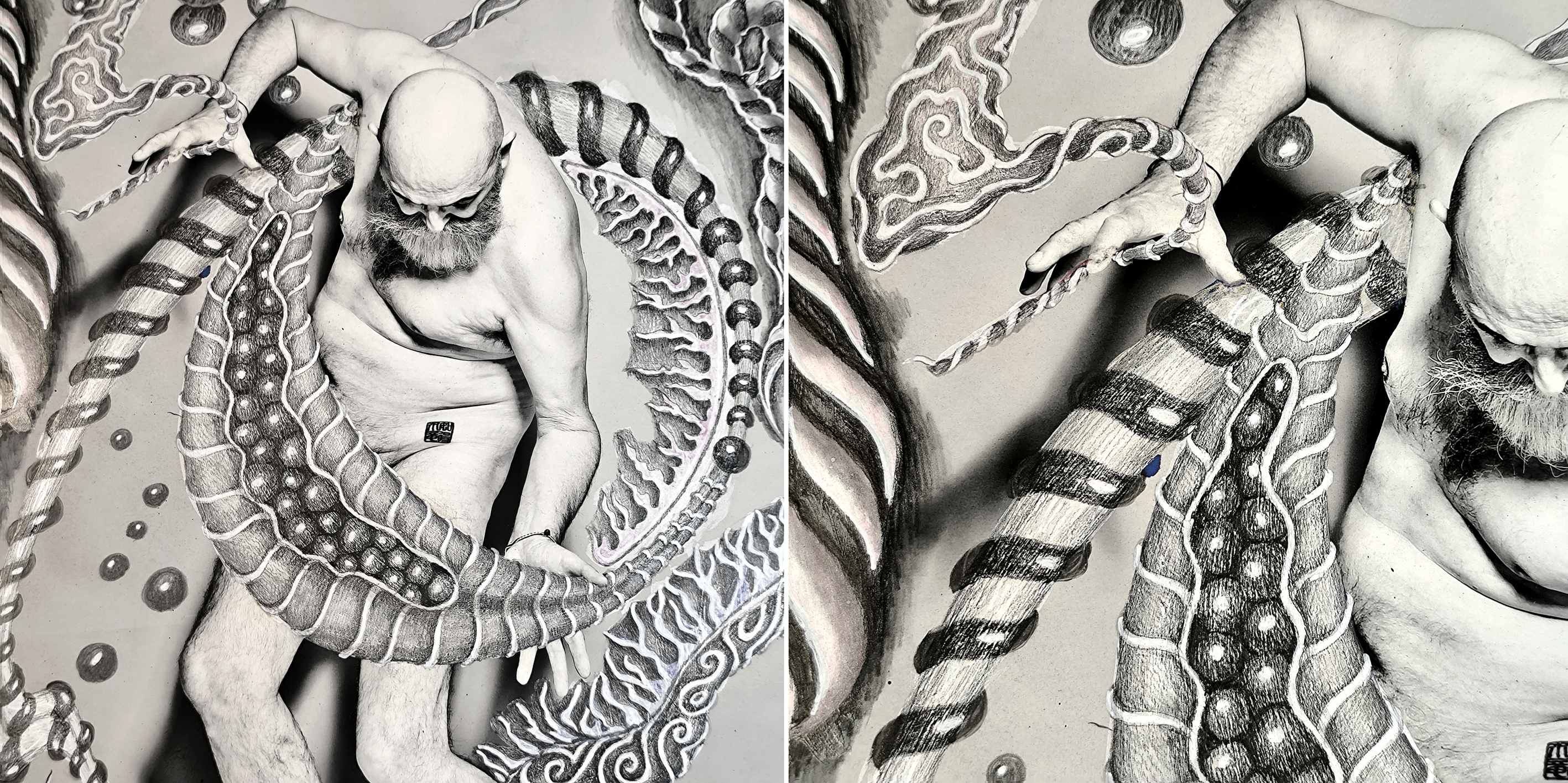 Ainsi se tisse un travail à quatre mains et deux sensibilités, où l’image photographique et le geste graphique s’enrichissent mutuellement, créant des œuvres hybrides où corps, mémoire et imaginaire se rencontrent.