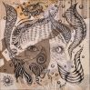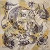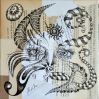 Dessin à l‘encre sur papier marouflé sur toile tendue sur châssis, 40x40 cm