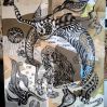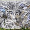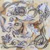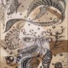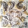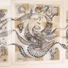 Dessin original à l‘encre sur papier marouflé sur toiles. Polyptyque, 18 toiles de format différent. Dimension hors tout 125x120 cm
