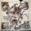 Dessin au Stylo-bille sur papier marouflé sur toile tendue sur châssis, 80x80 cm