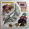 Ajout de dentelle, ruban, ficelle, feuille et fleurs séchées, plumes, cousus et/ou collés et autre suivant les oeuvres .