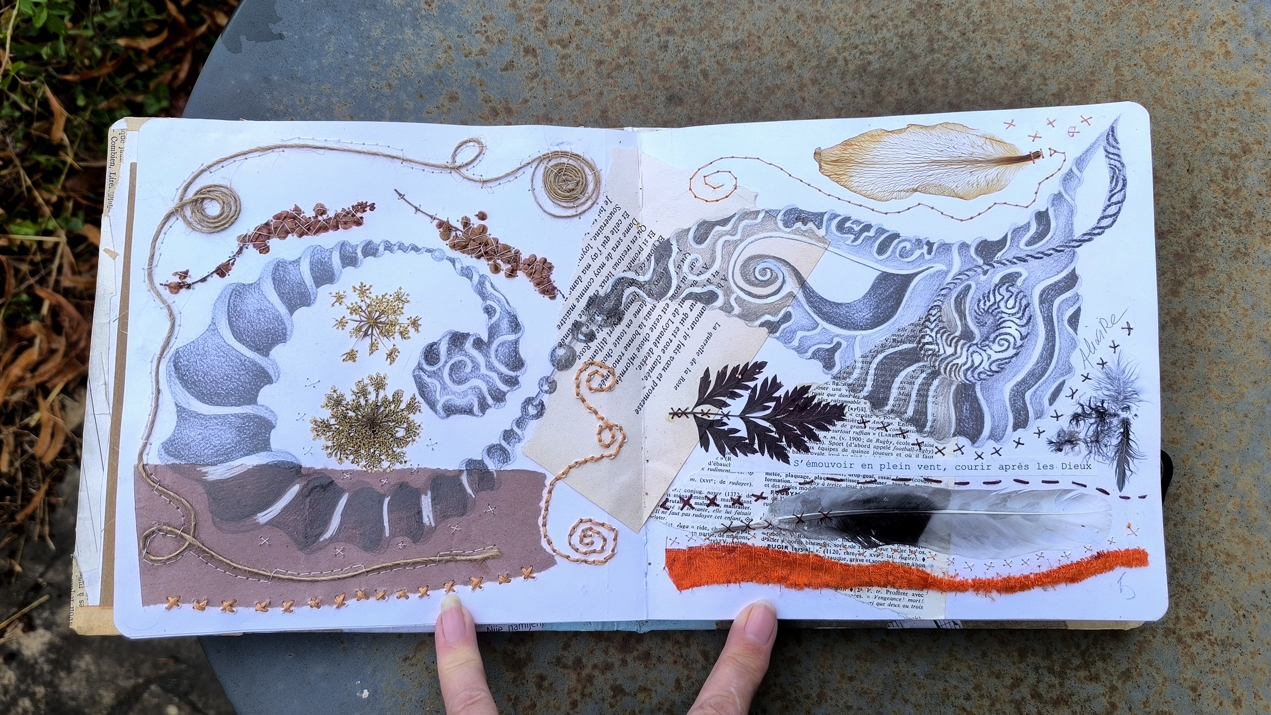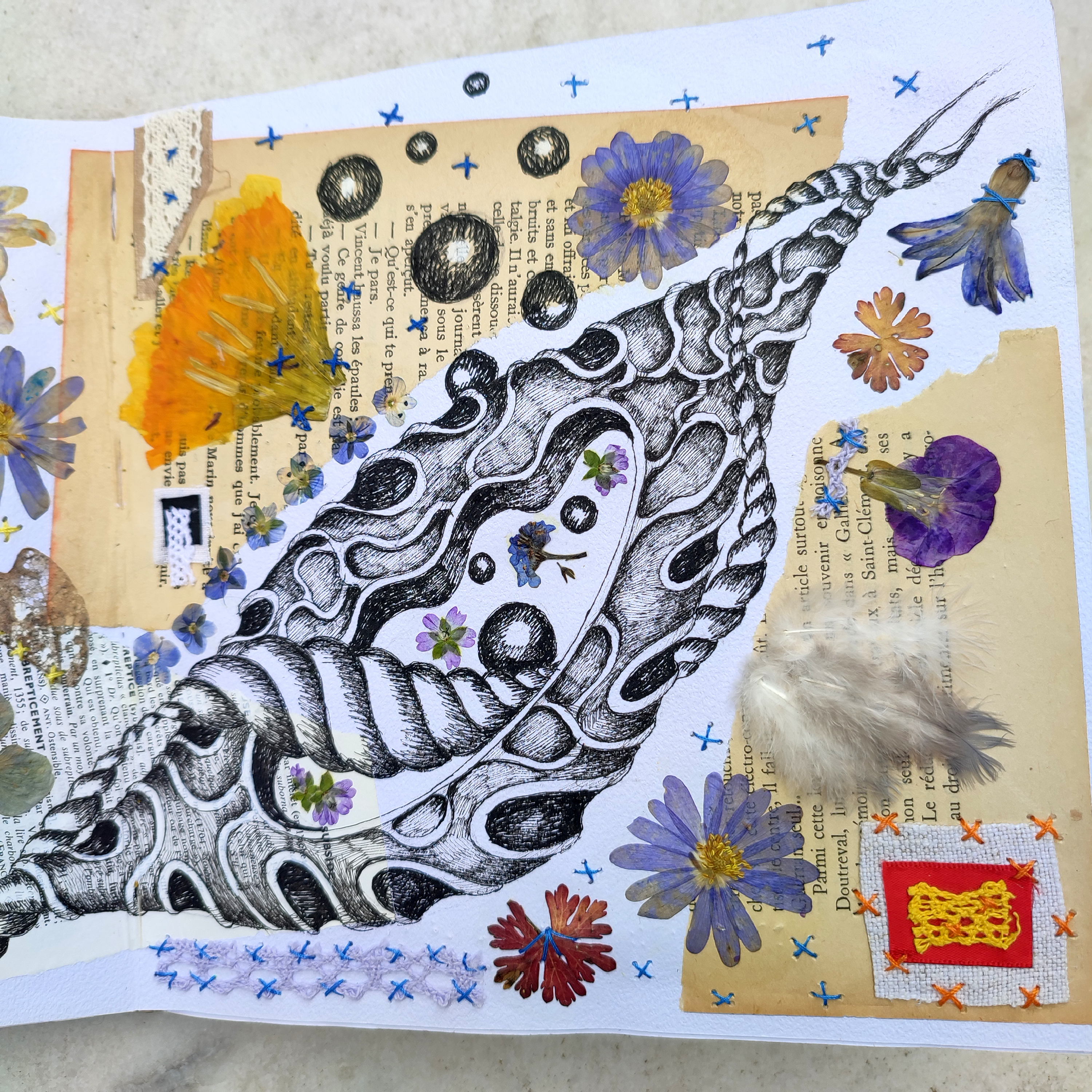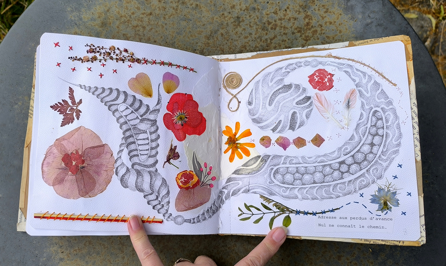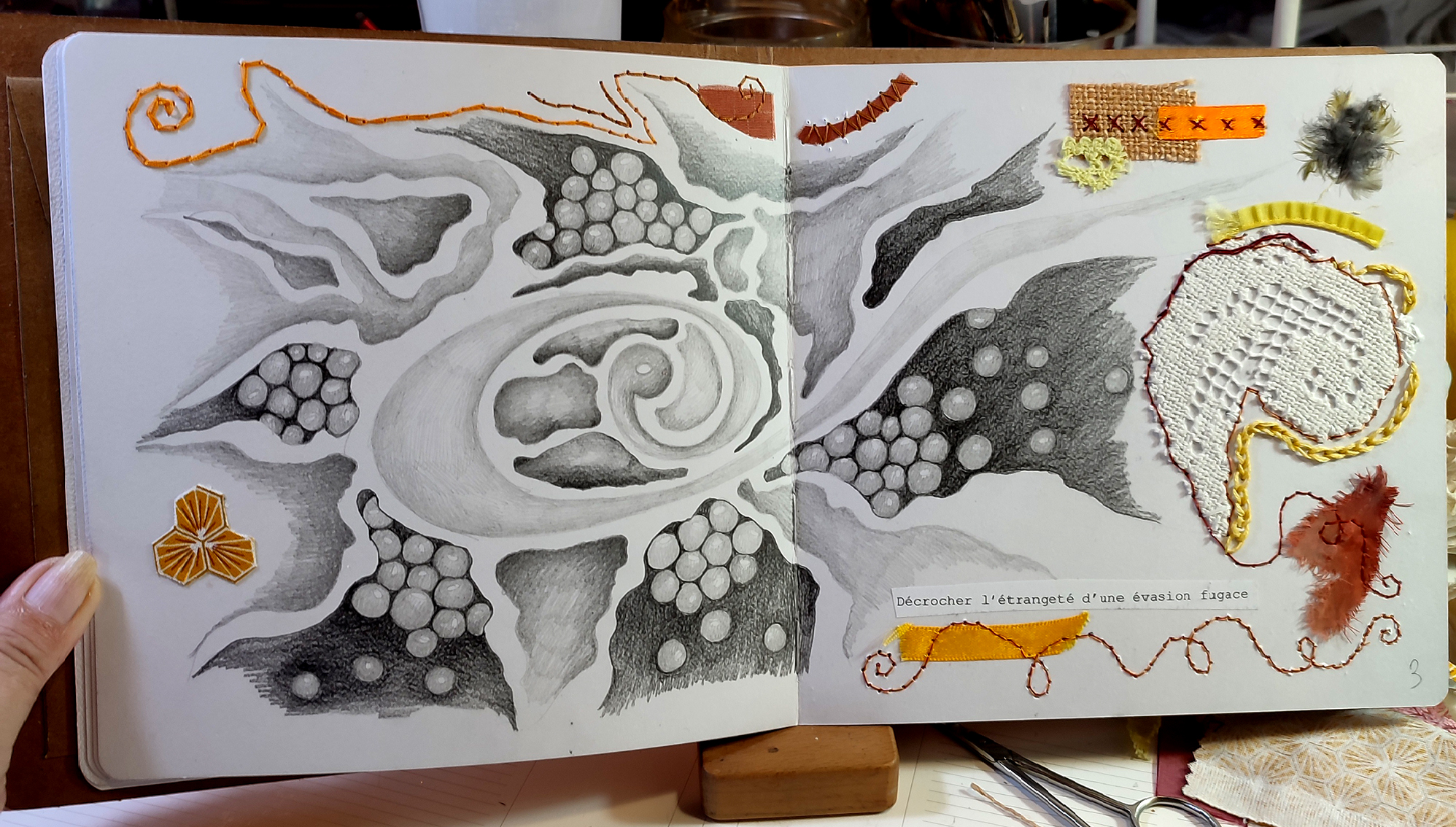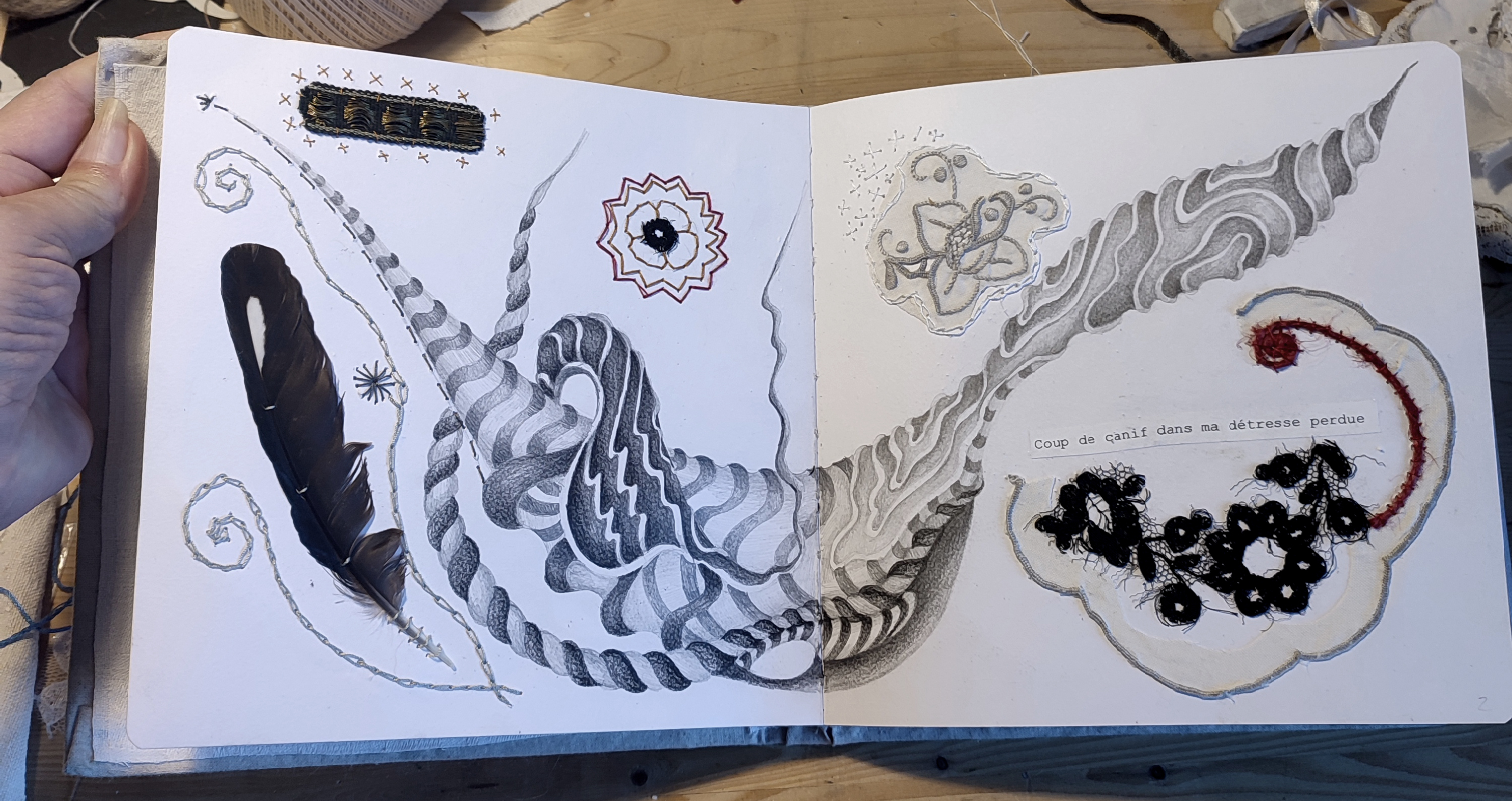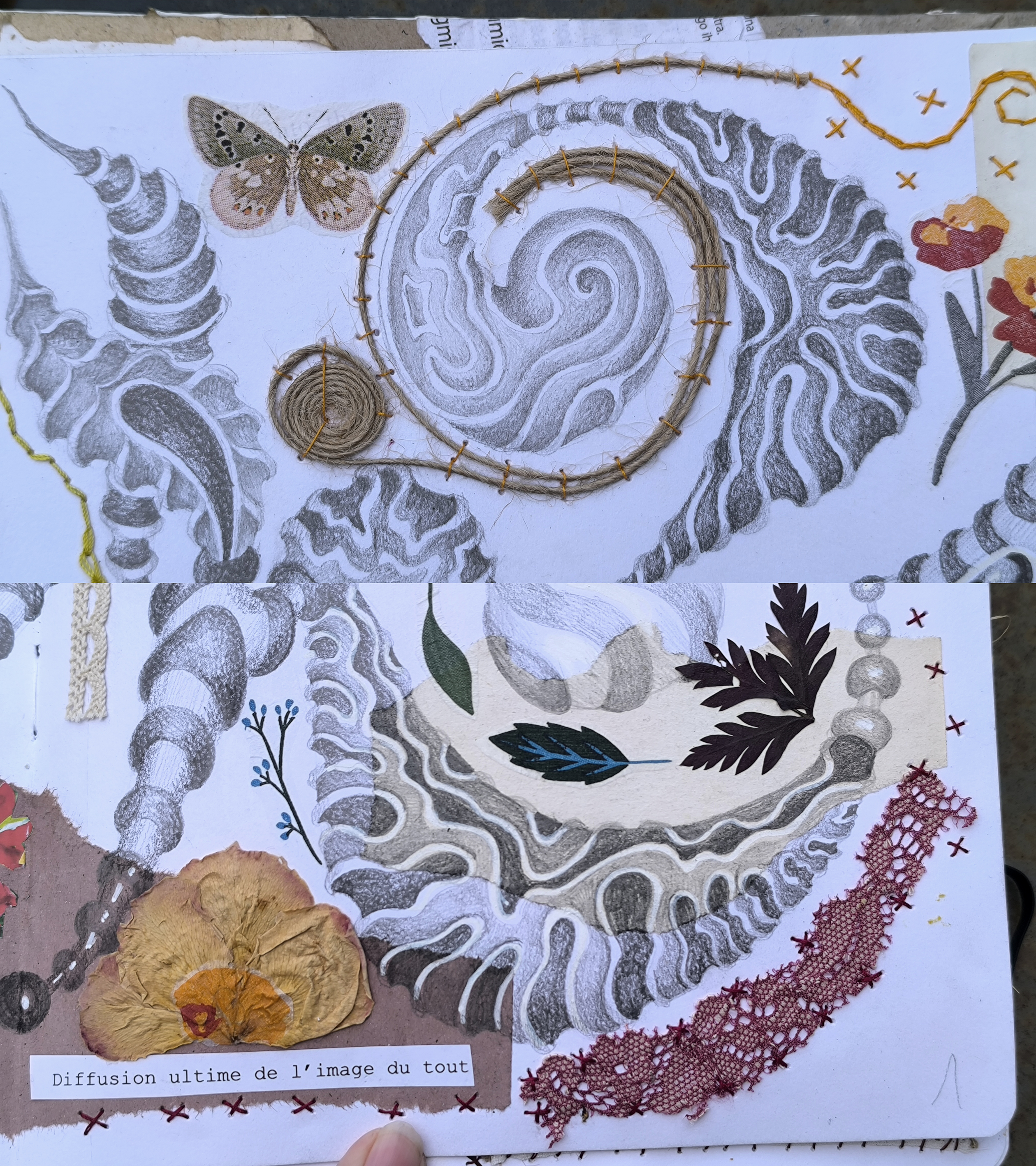 Je transforme un simple carnet trouvé dans le commerce (j’adore les carnets) en une œuvre unique, où chaque page devient un monde à part.