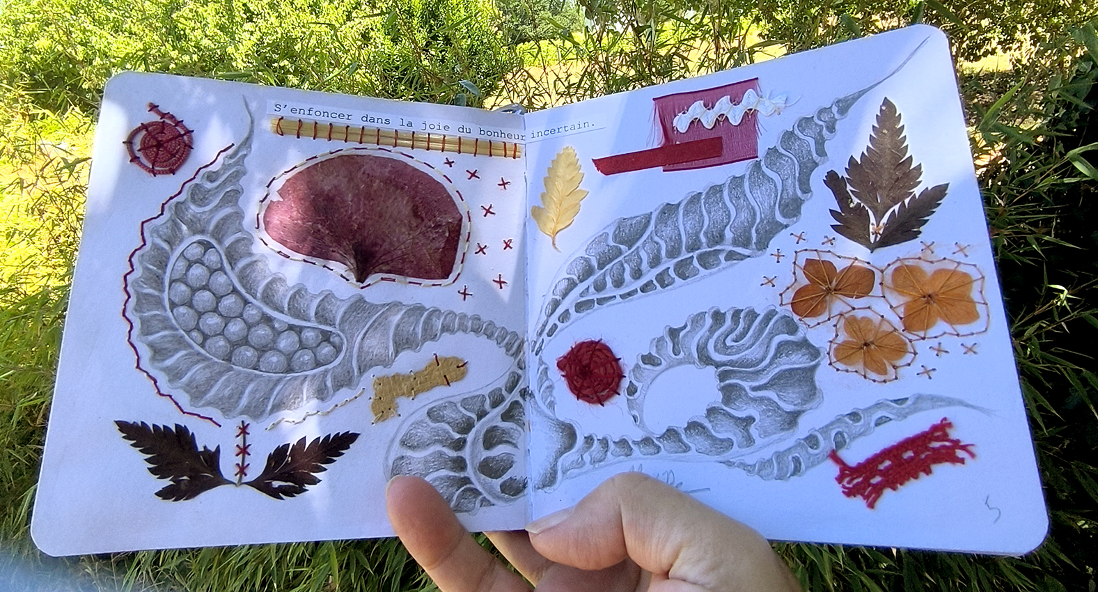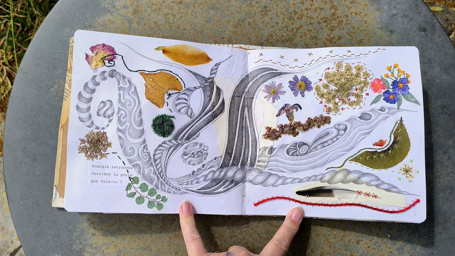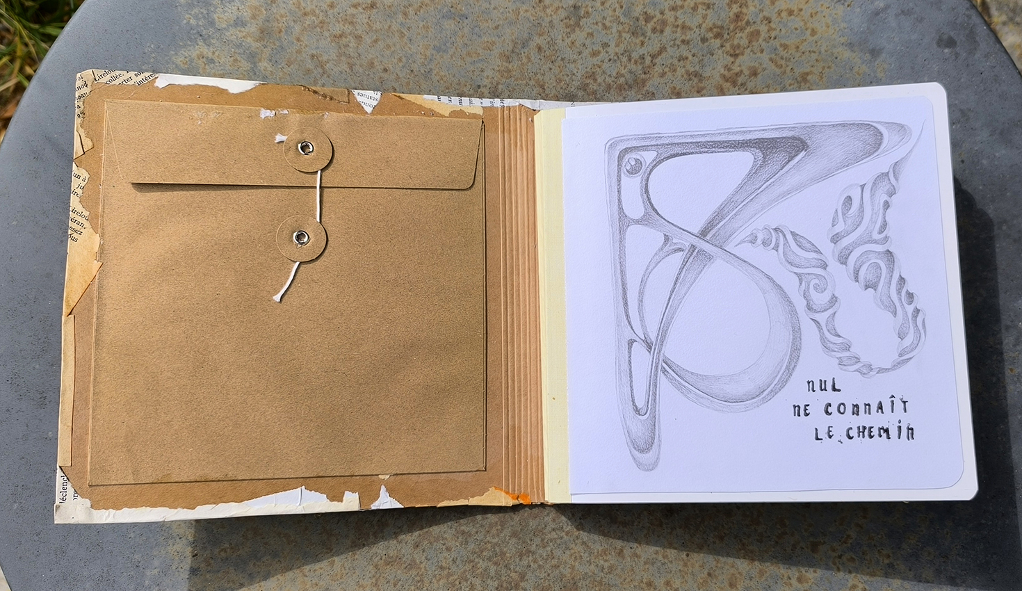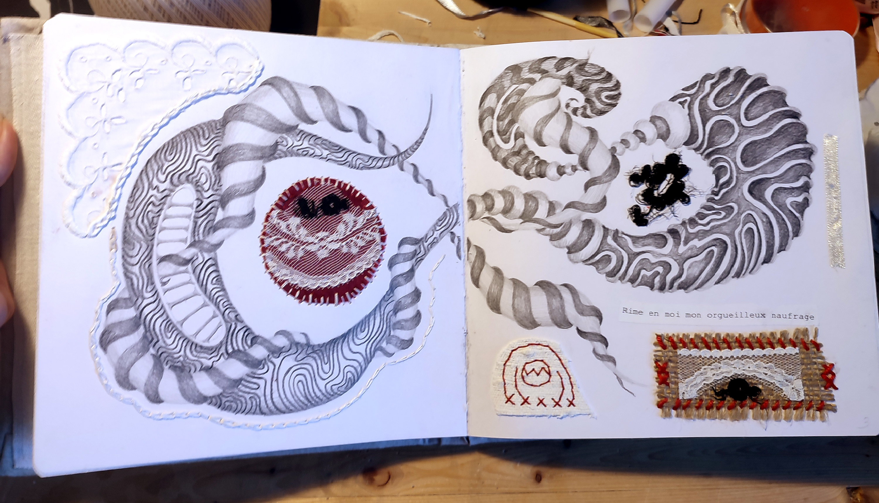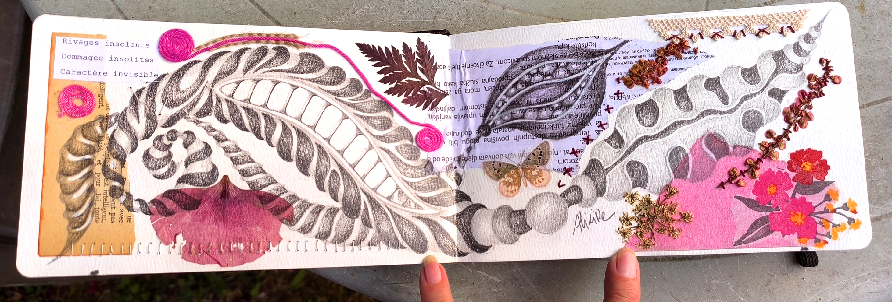 Je transforme un simple carnet trouvé dans le commerce (j’adore les carnets) en une œuvre unique, où chaque page devient un monde à part.