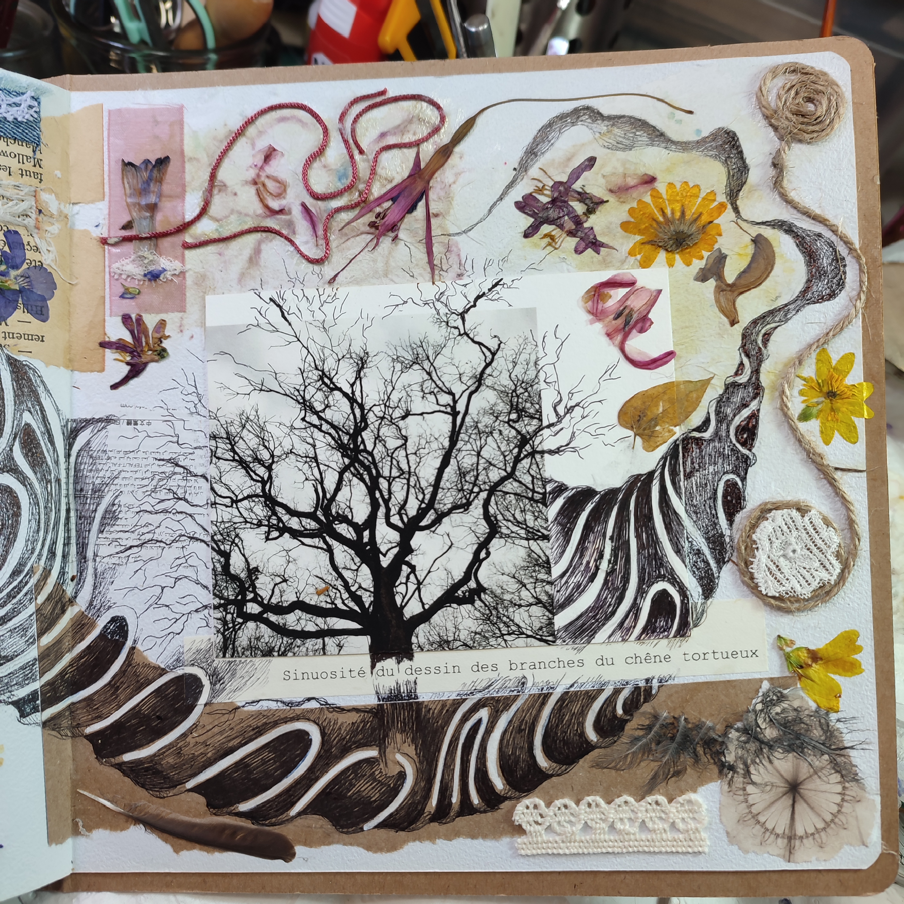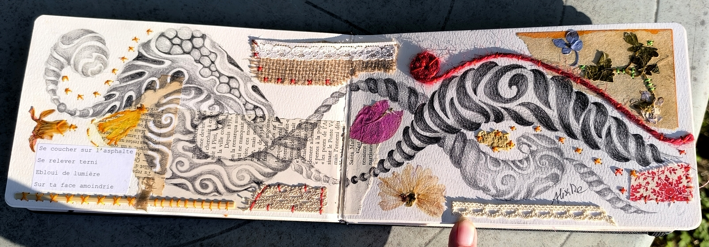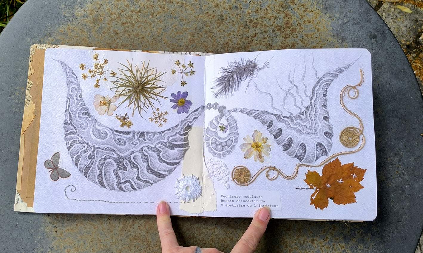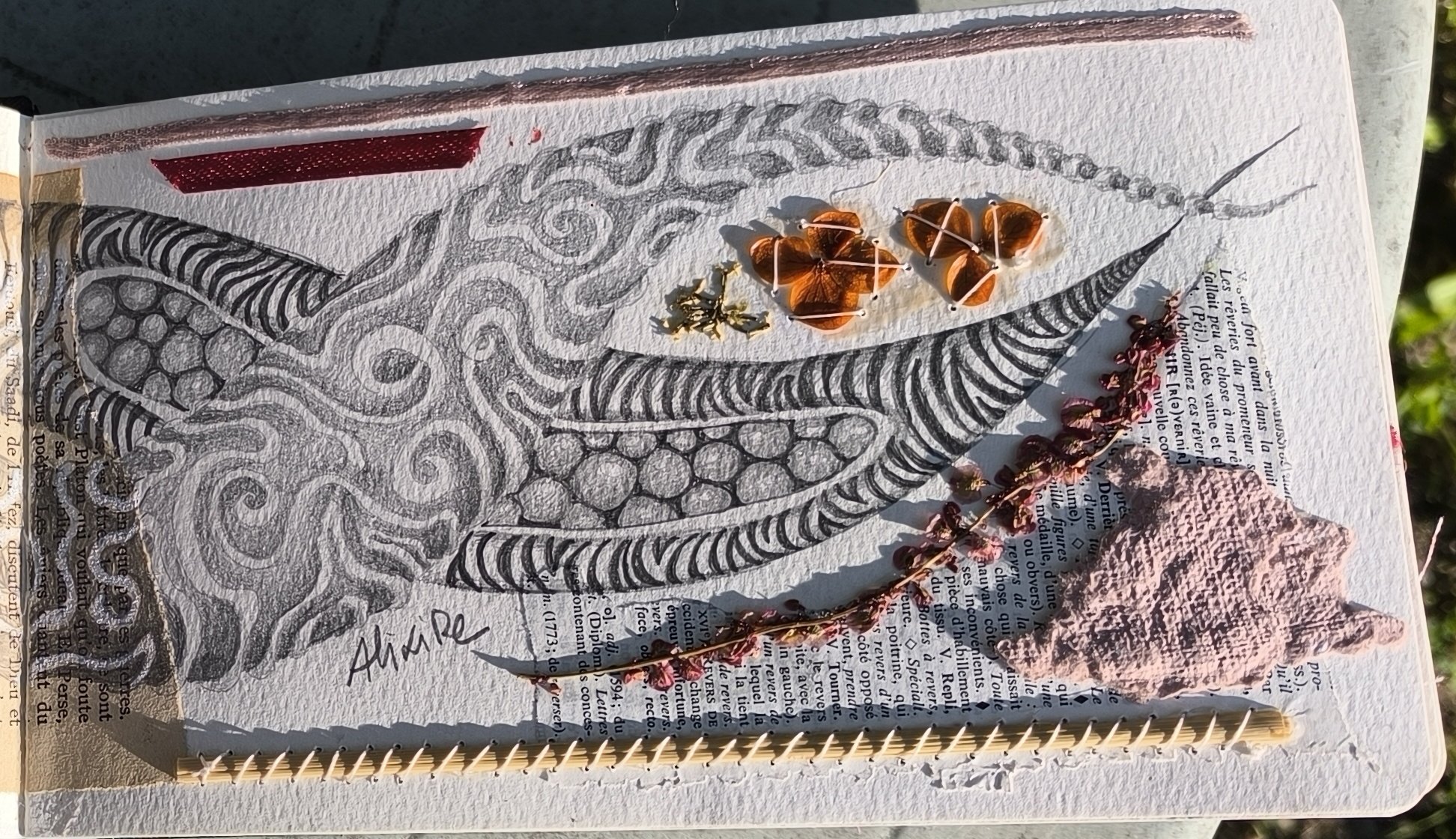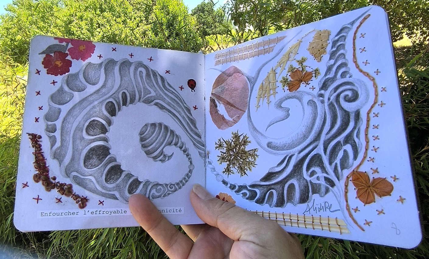 Je transforme un simple carnet trouvé dans le commerce (j’adore les carnets) en une œuvre unique, où chaque page devient un monde à part.