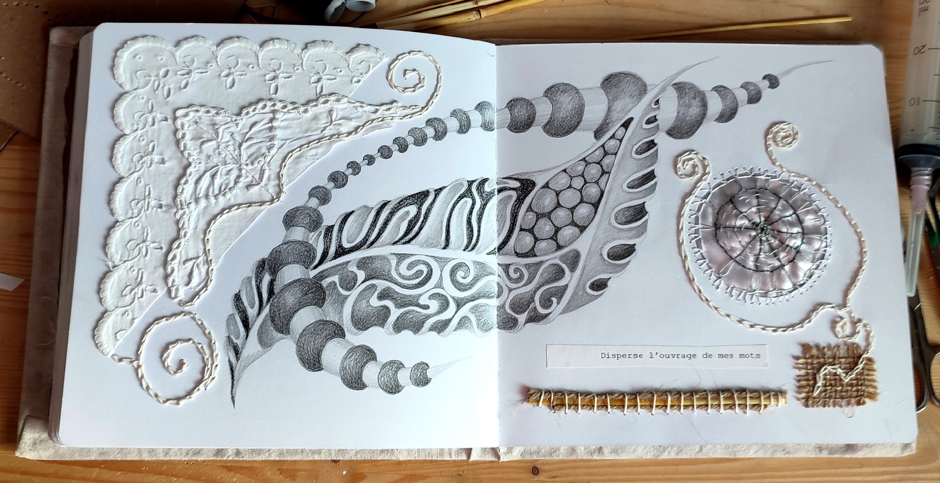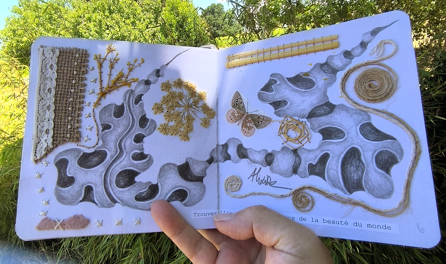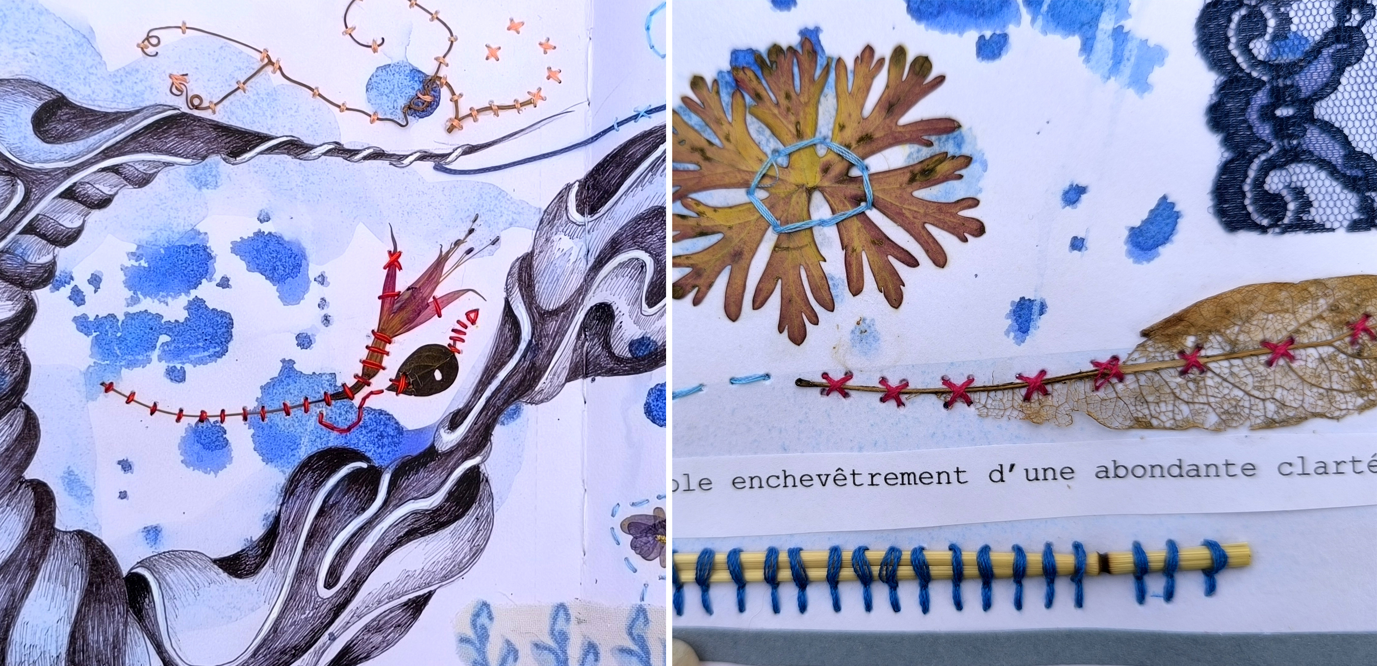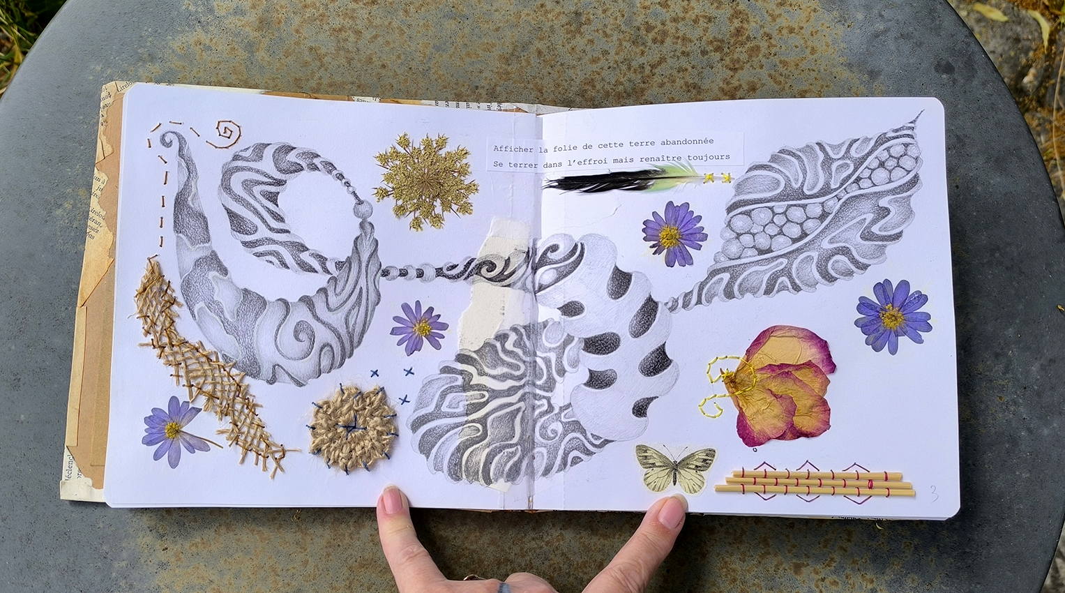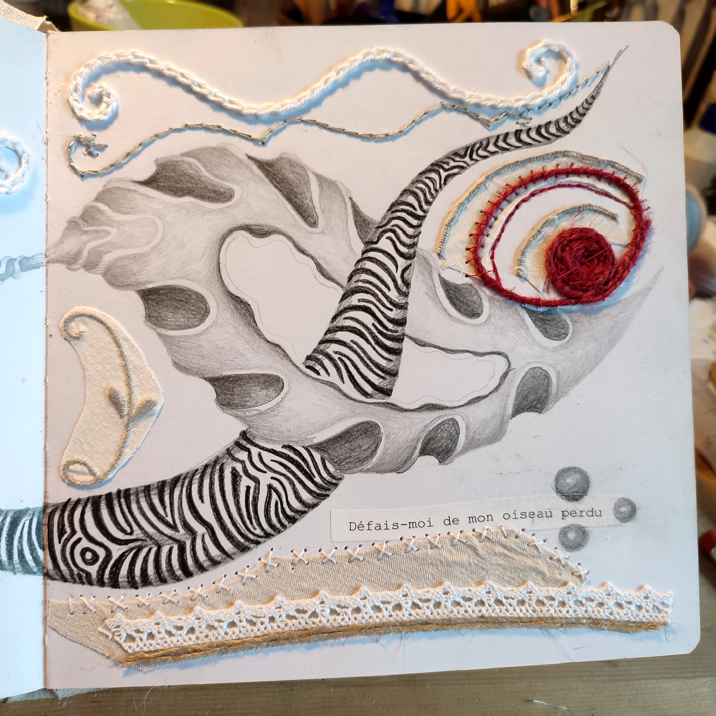 Je transforme un simple carnet trouvé dans le commerce (j’adore les carnets) en une œuvre unique, où chaque page devient un monde à part.
