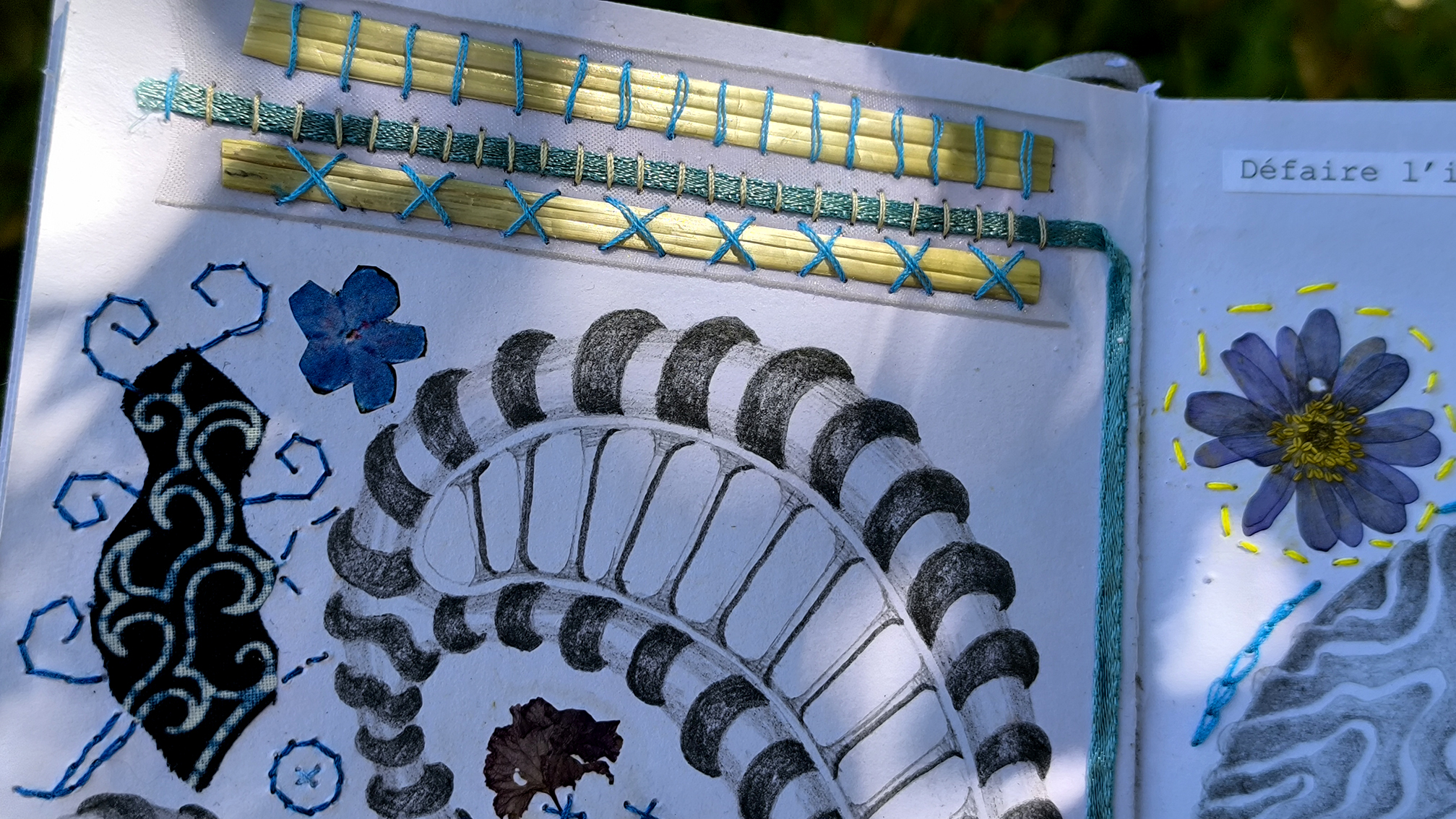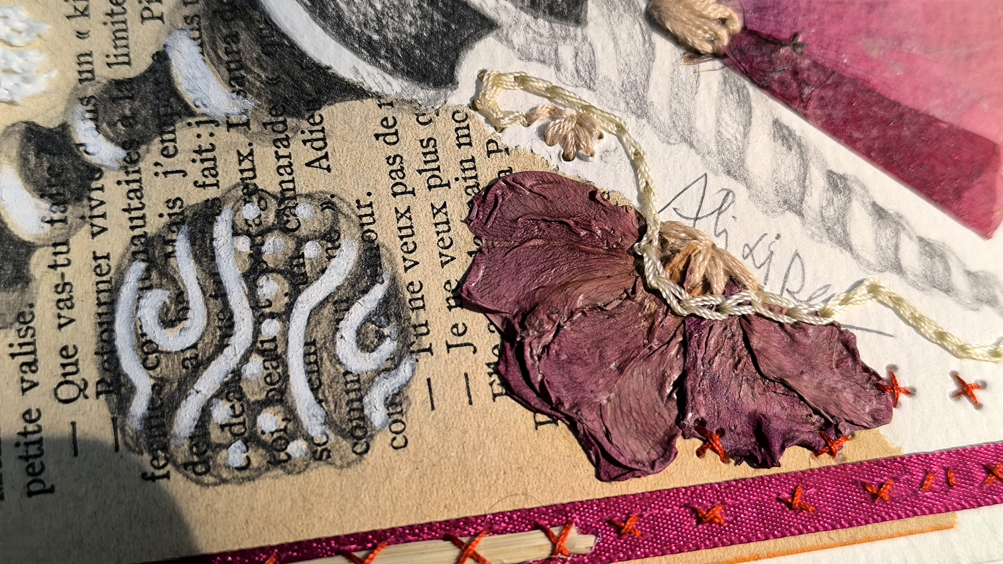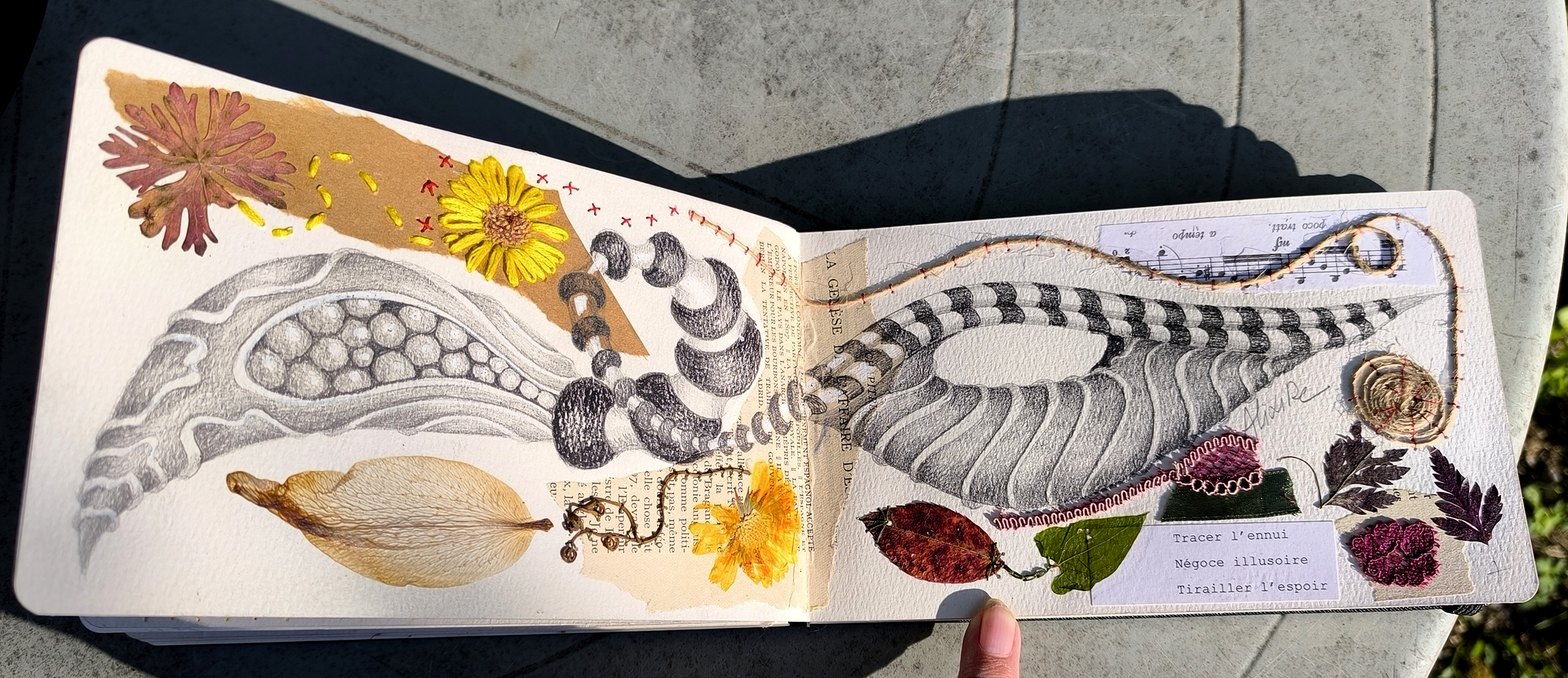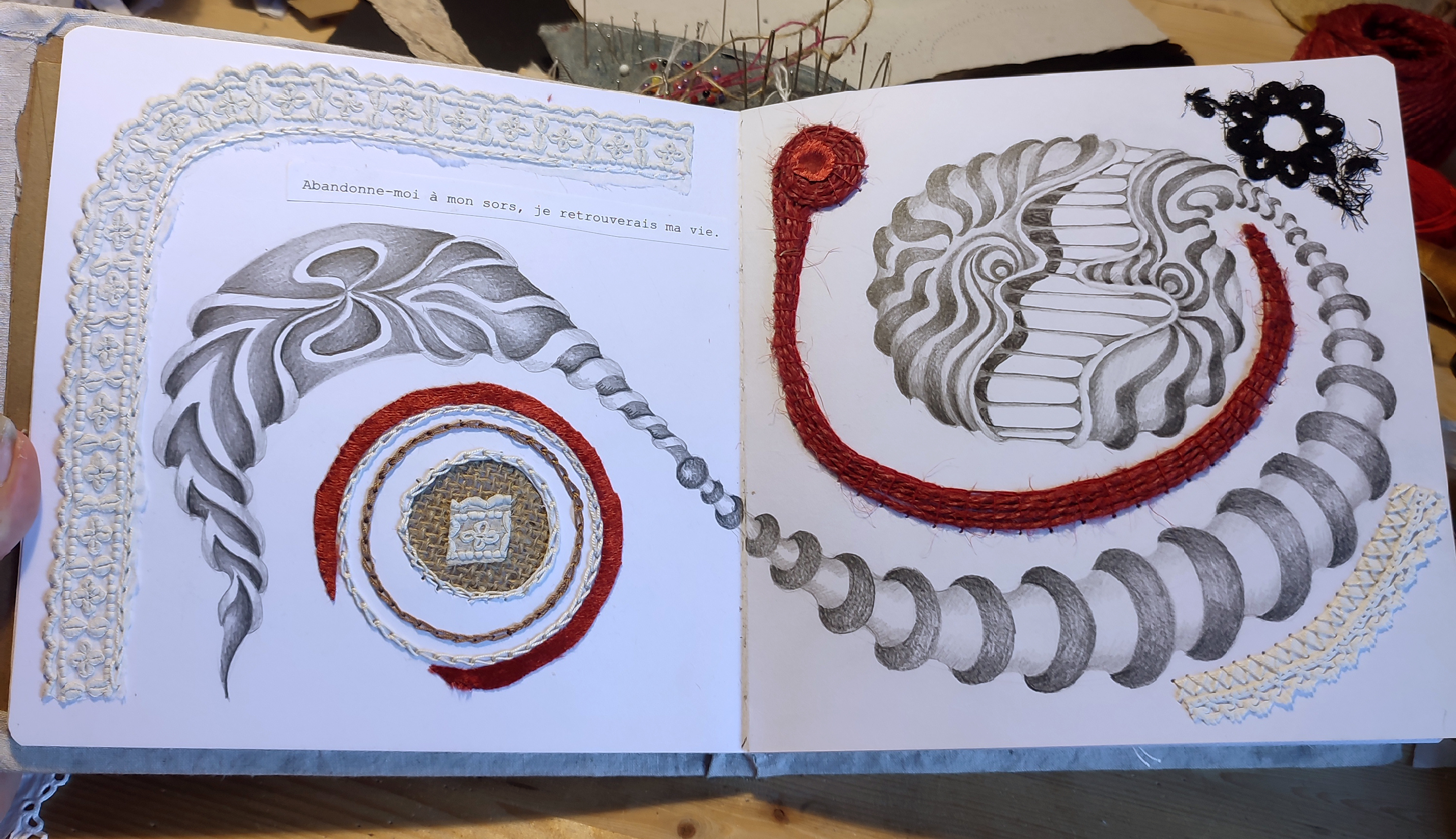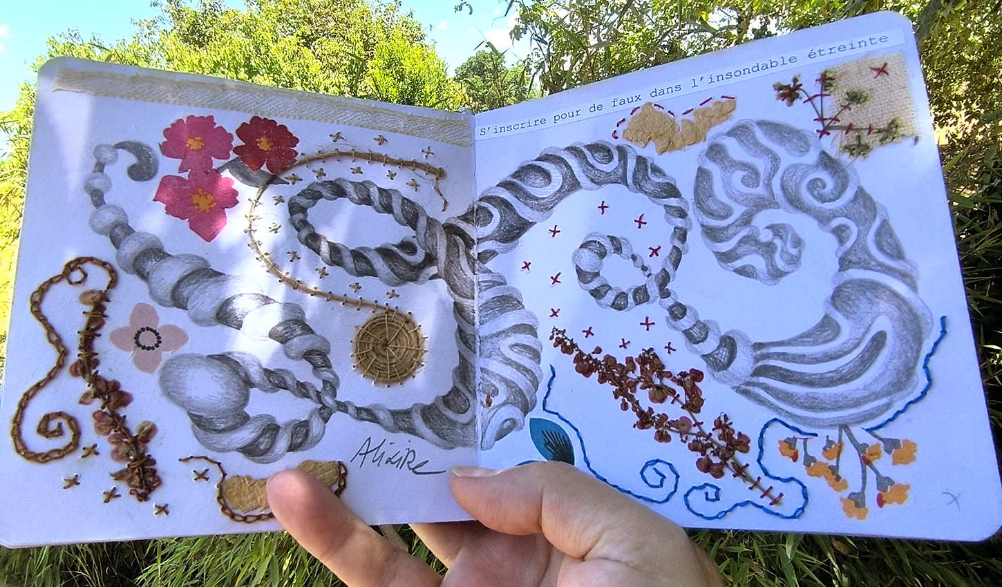 Je transforme un simple carnet trouvé dans le commerce (j’adore les carnets) en une œuvre unique, où chaque page devient un monde à part.