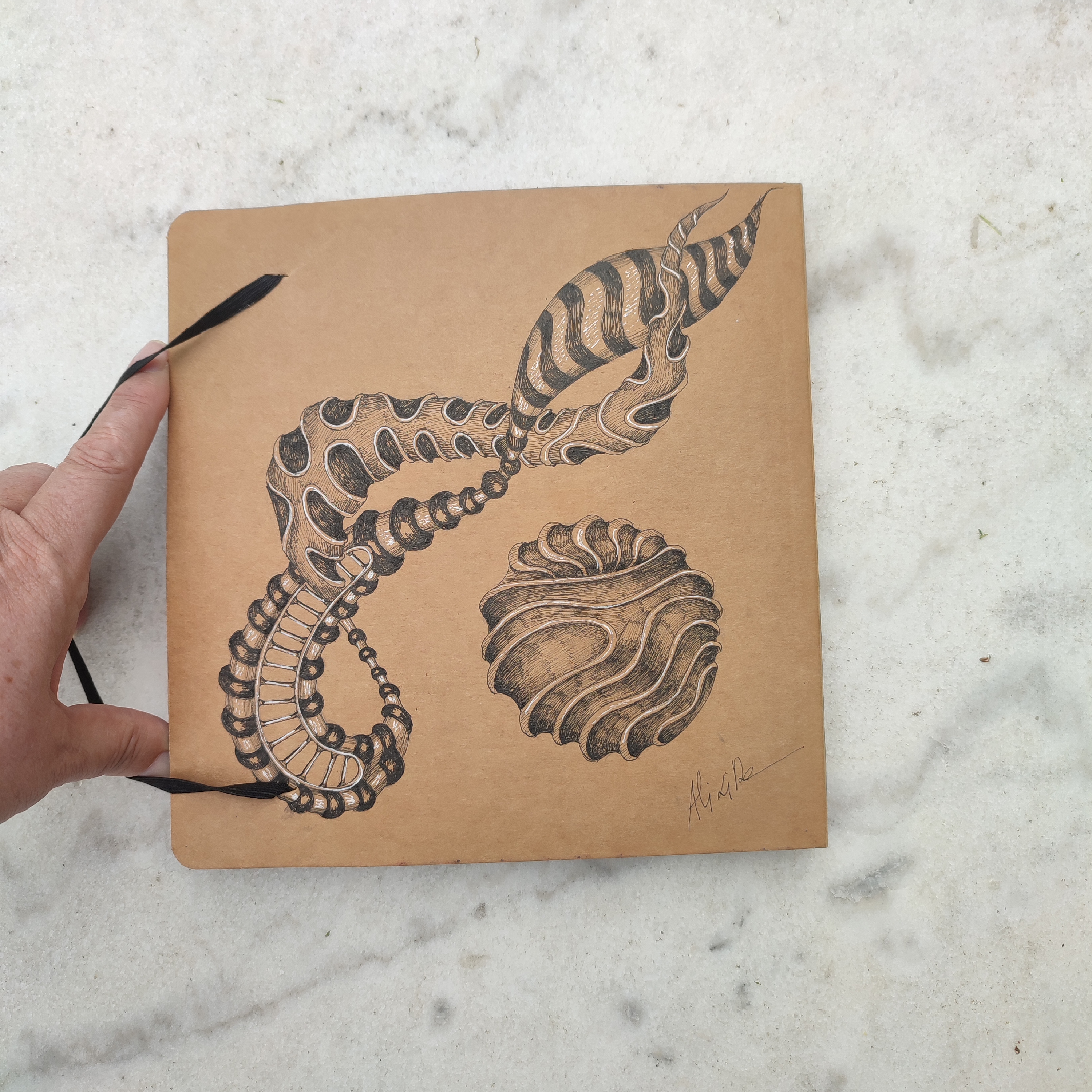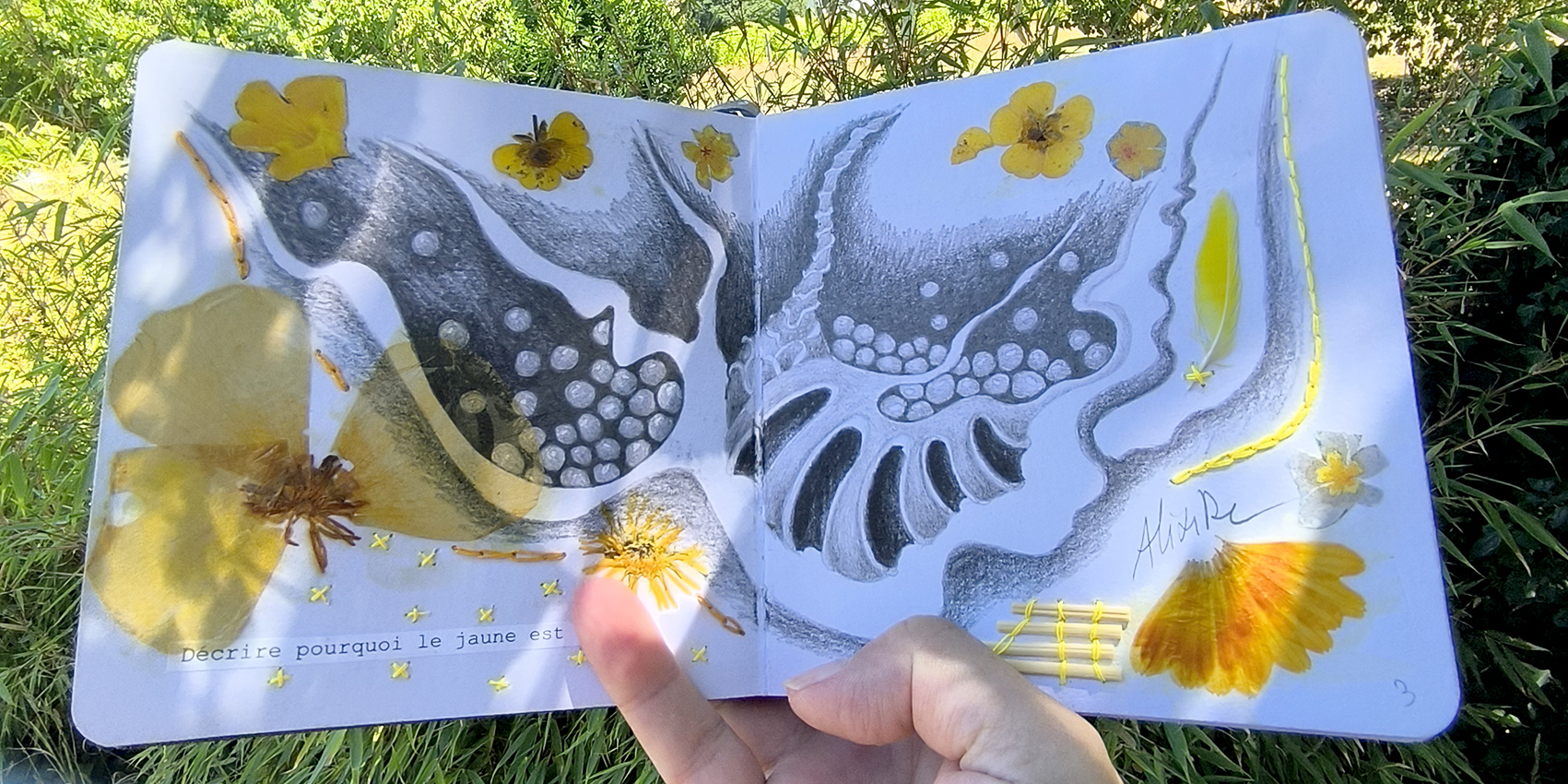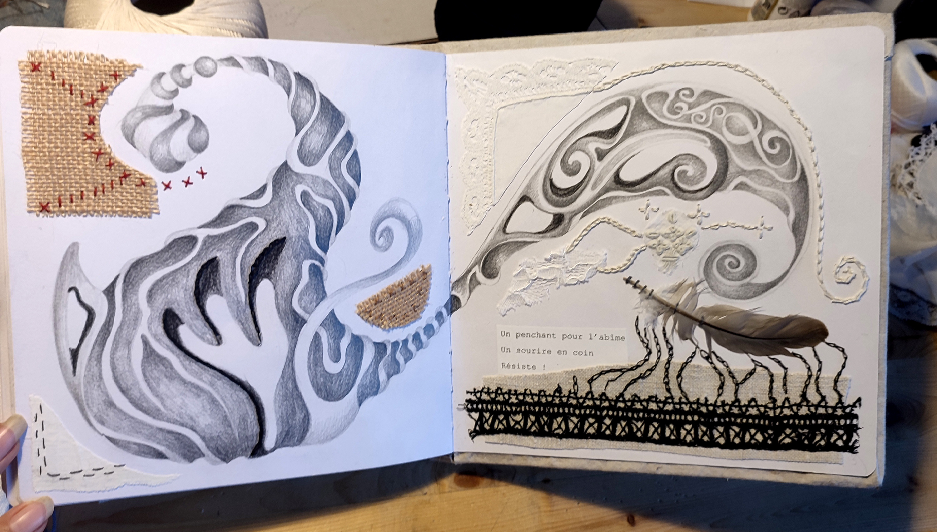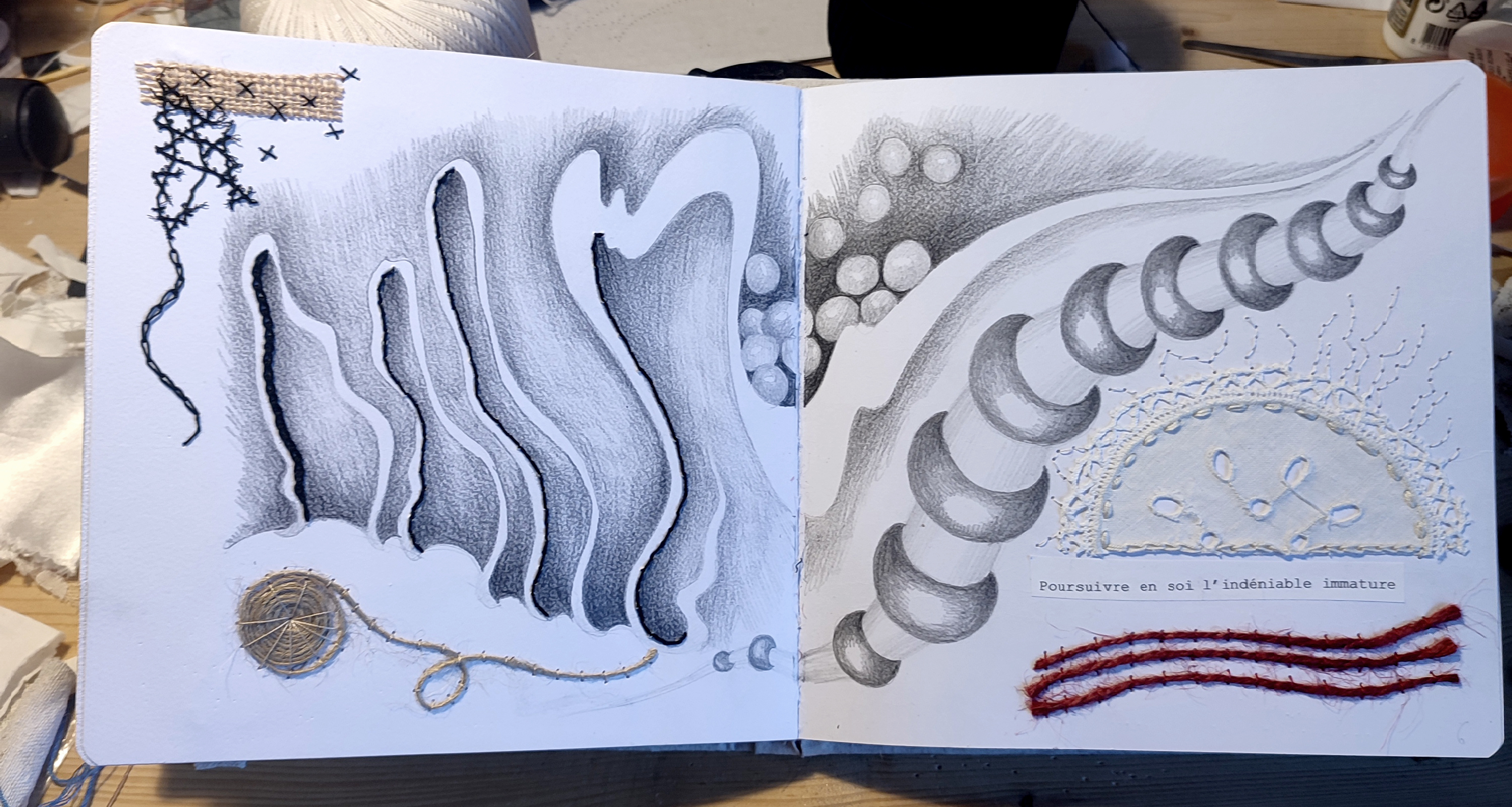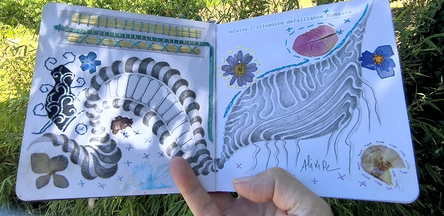 Je transforme un simple carnet trouvé dans le commerce (j’adore les carnets) en une œuvre unique, où chaque page devient un monde à part.
