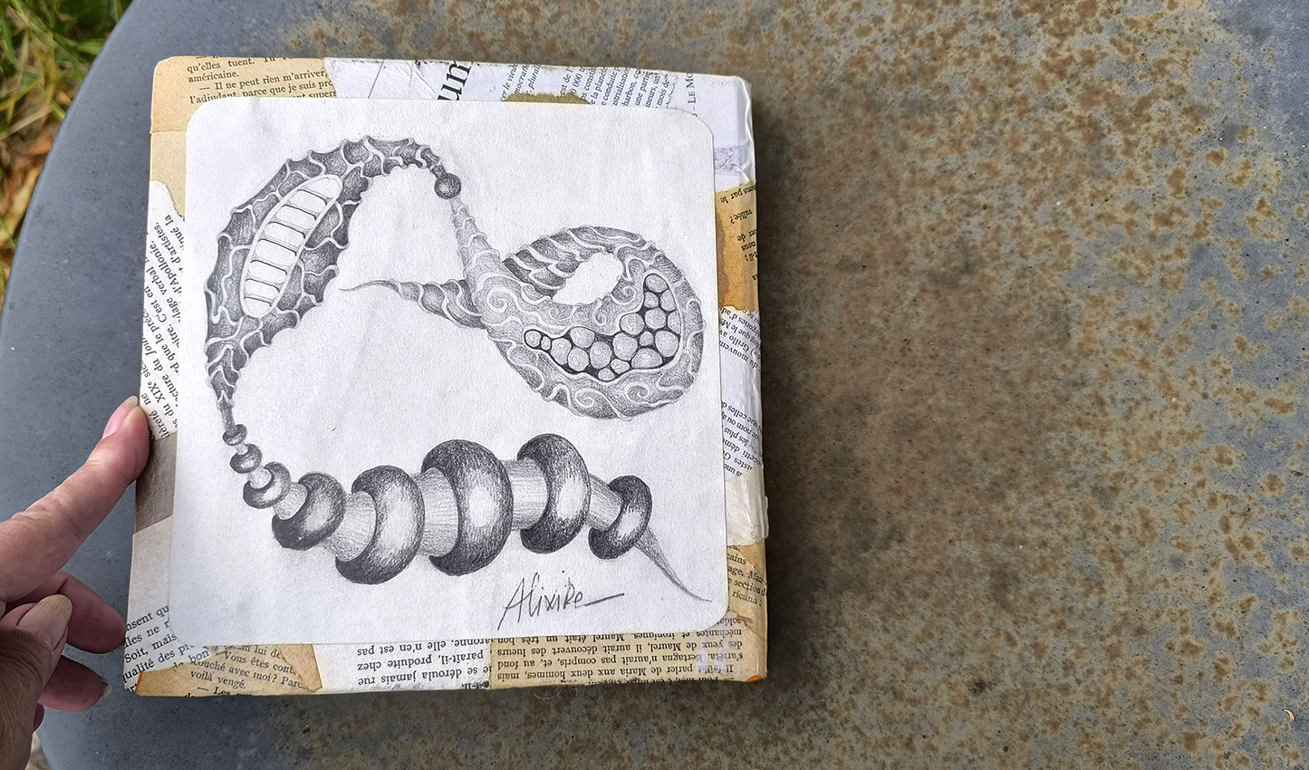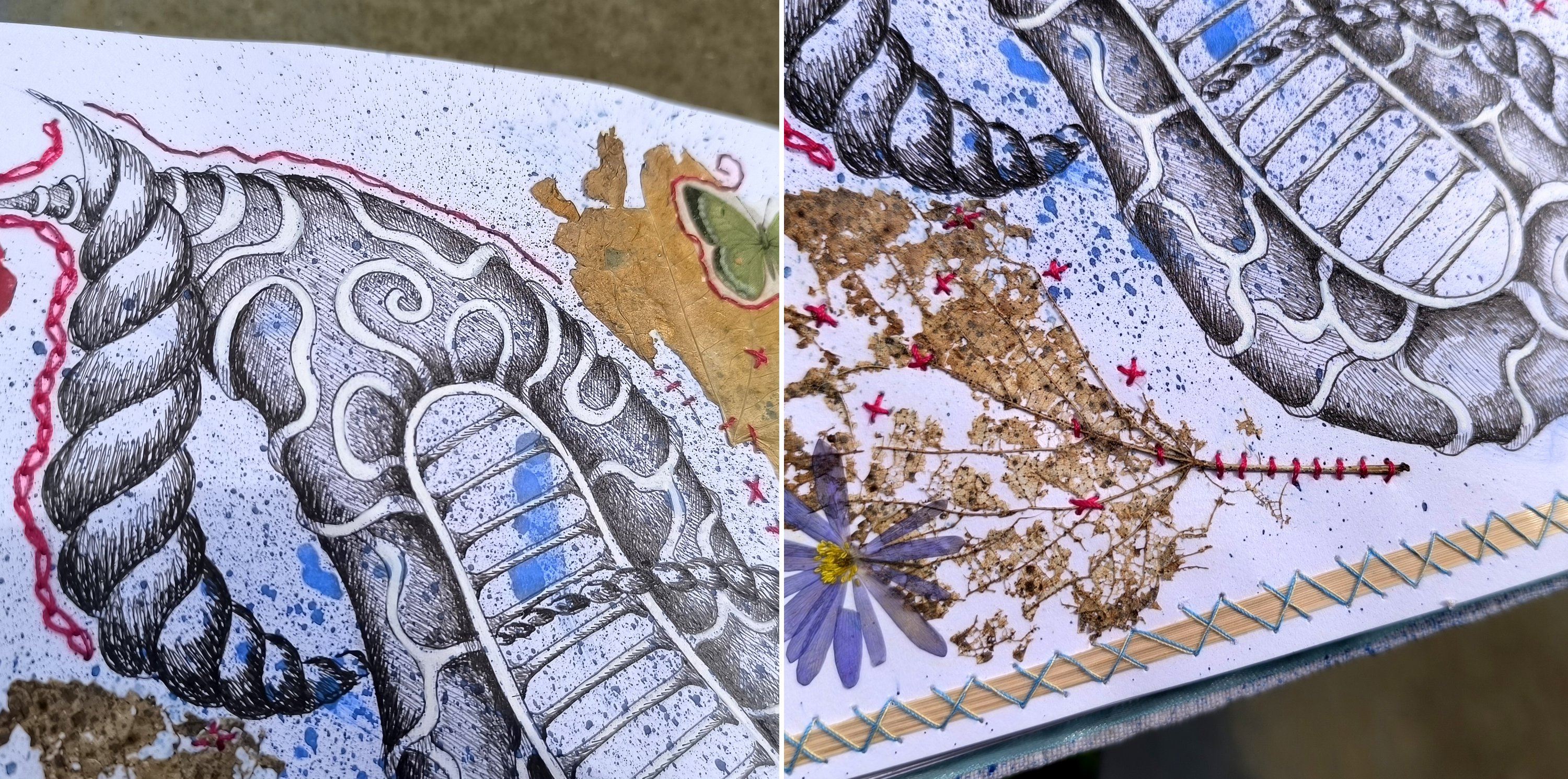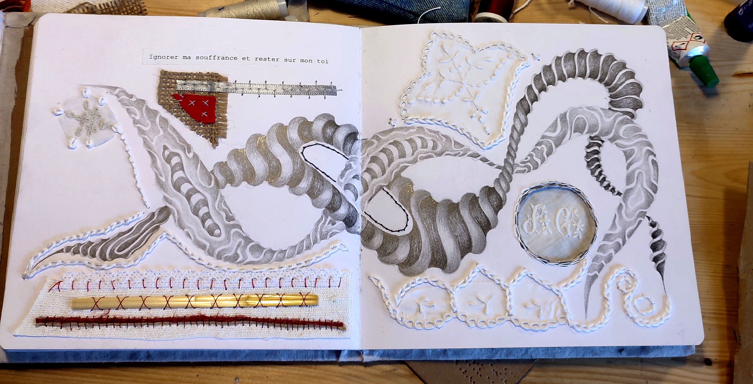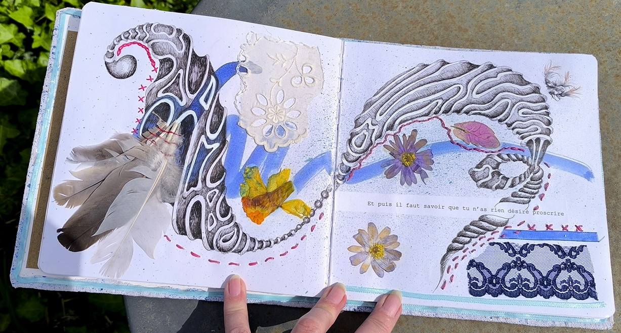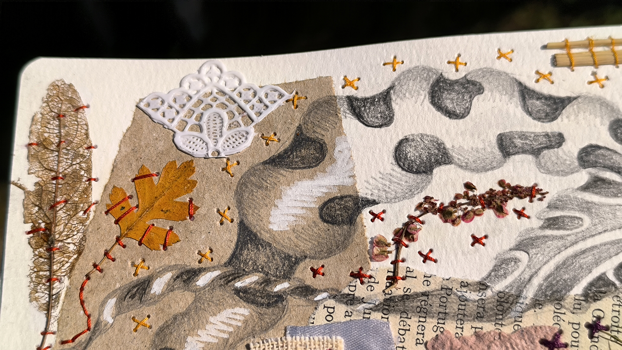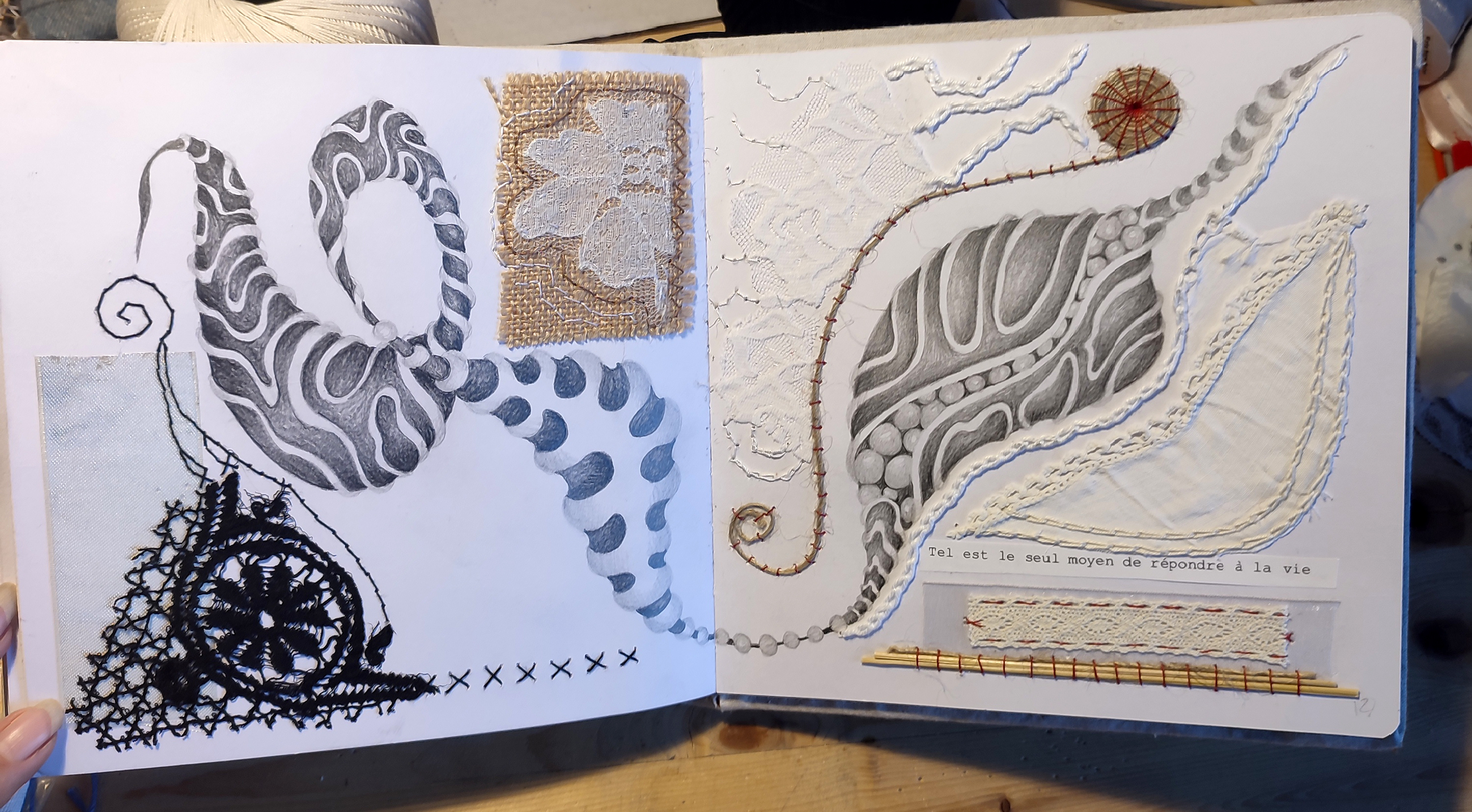 Je transforme un simple carnet trouvé dans le commerce (j’adore les carnets) en une œuvre unique, où chaque page devient un monde à part.