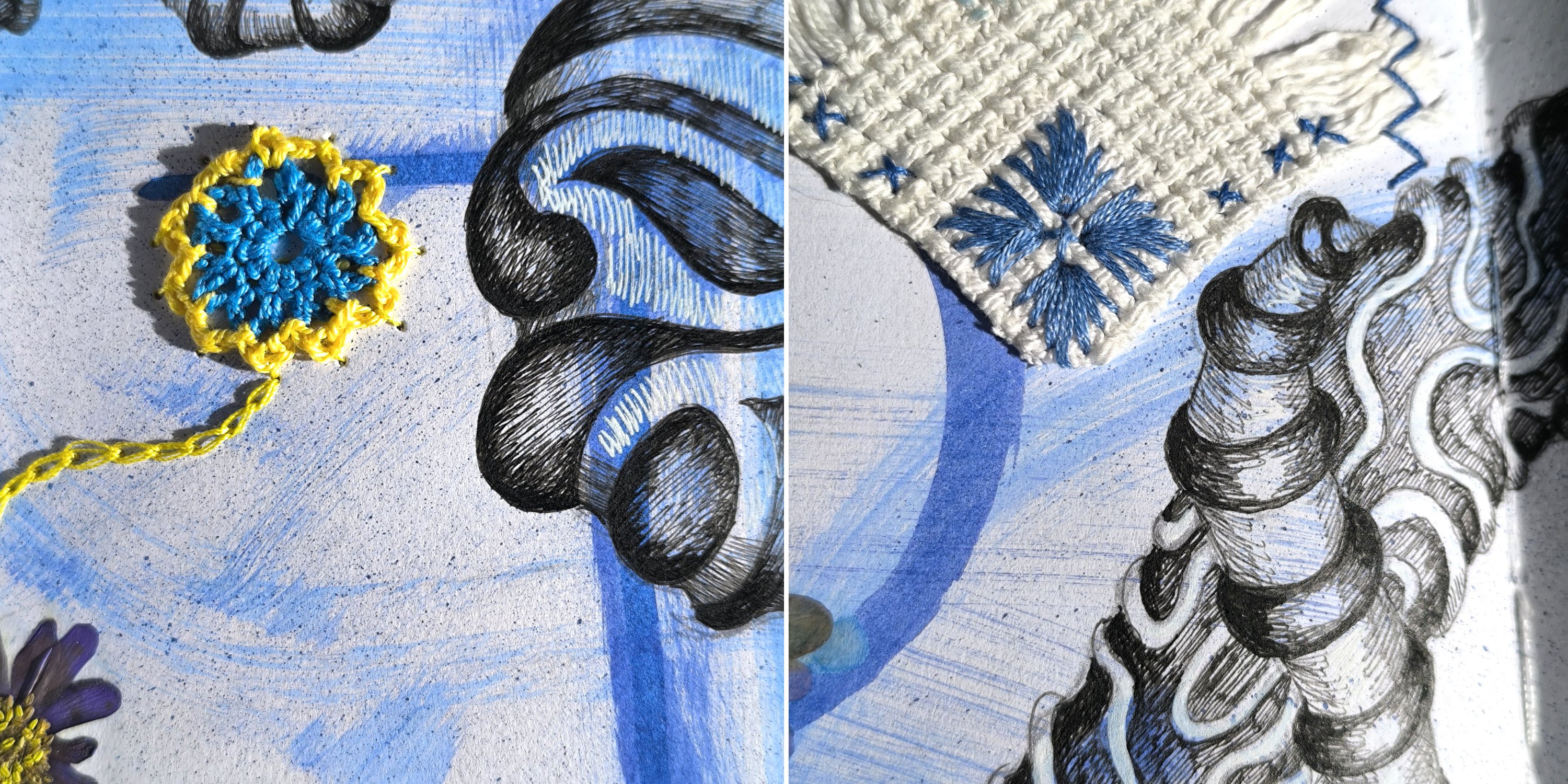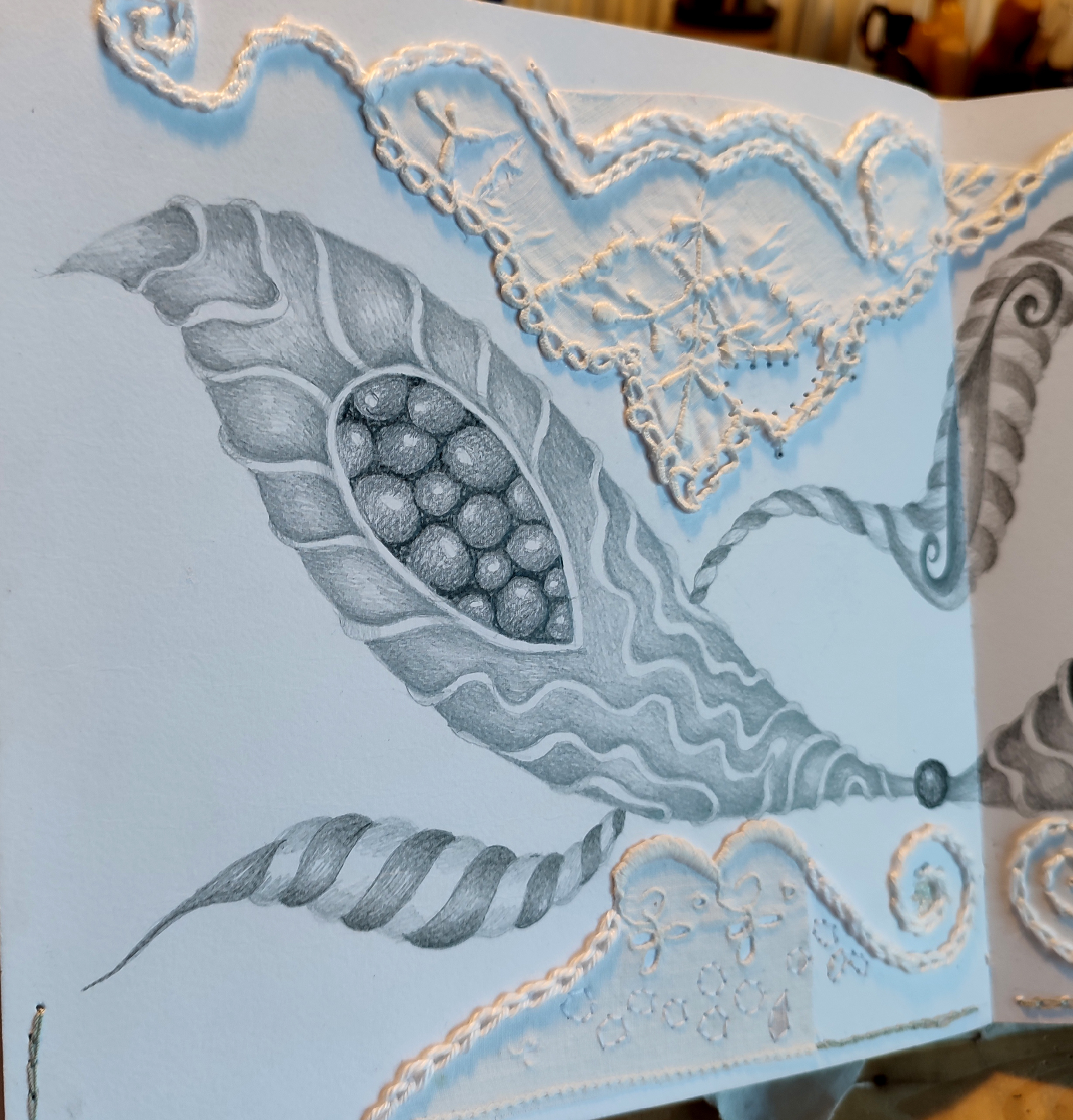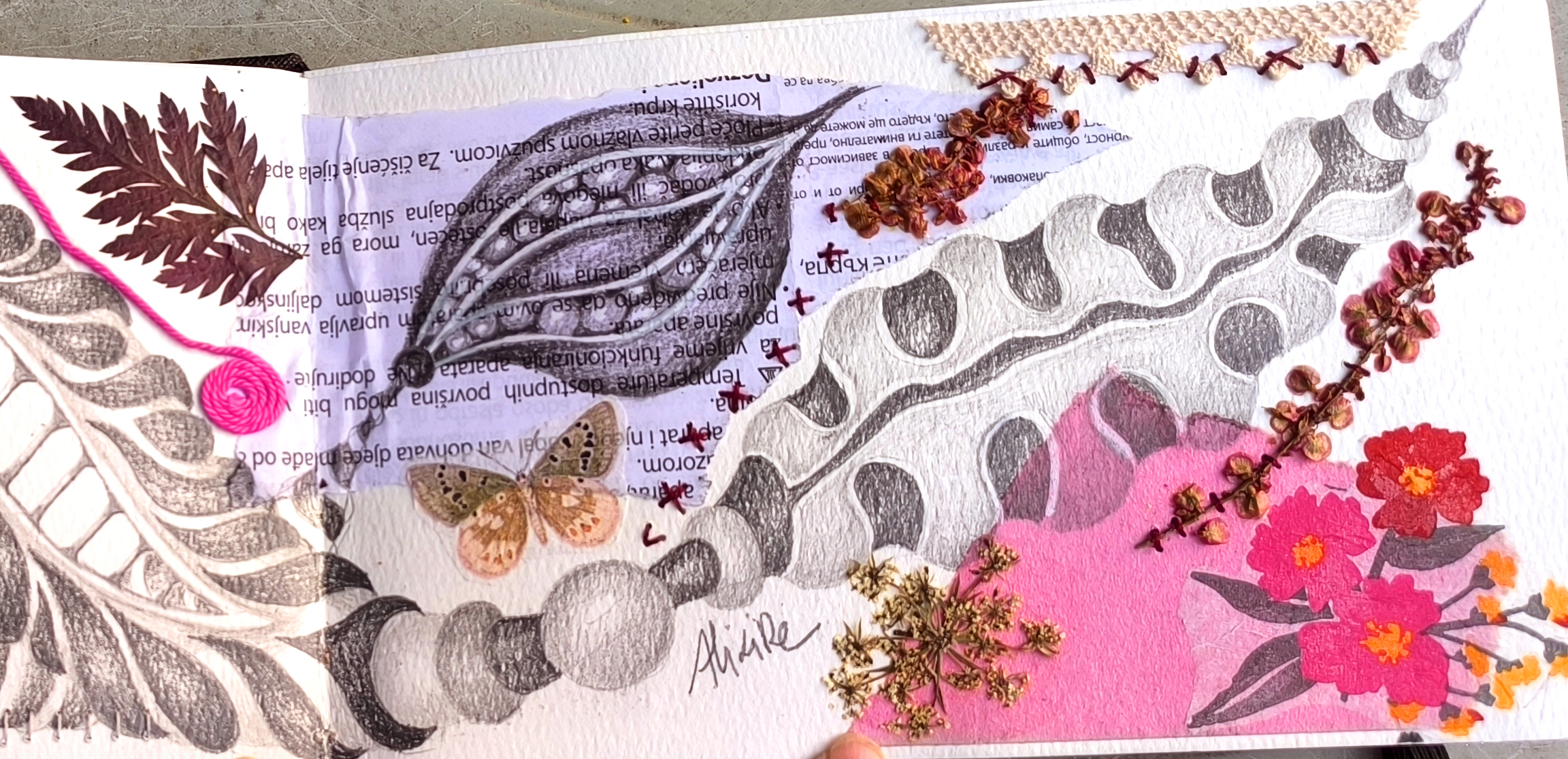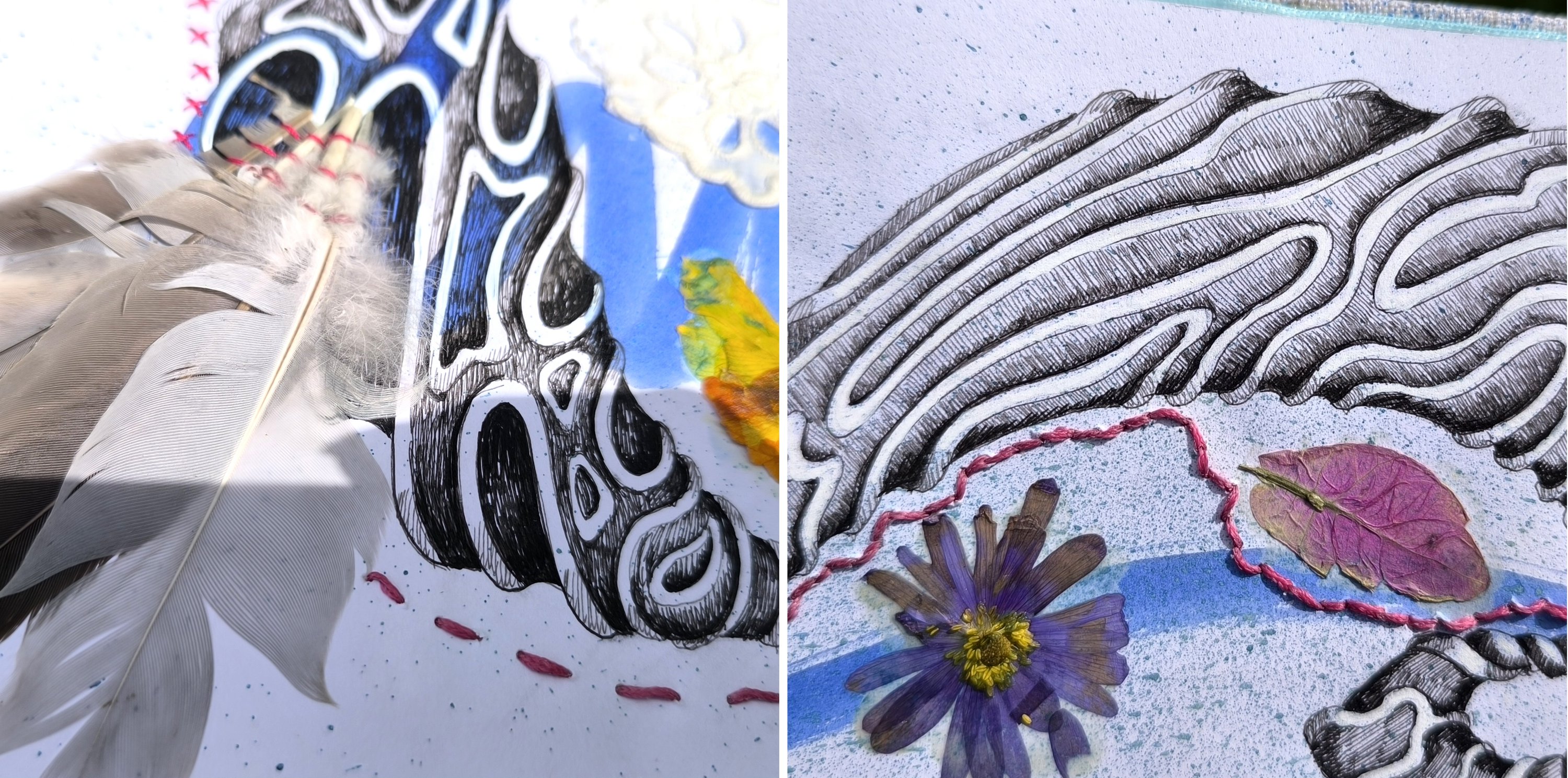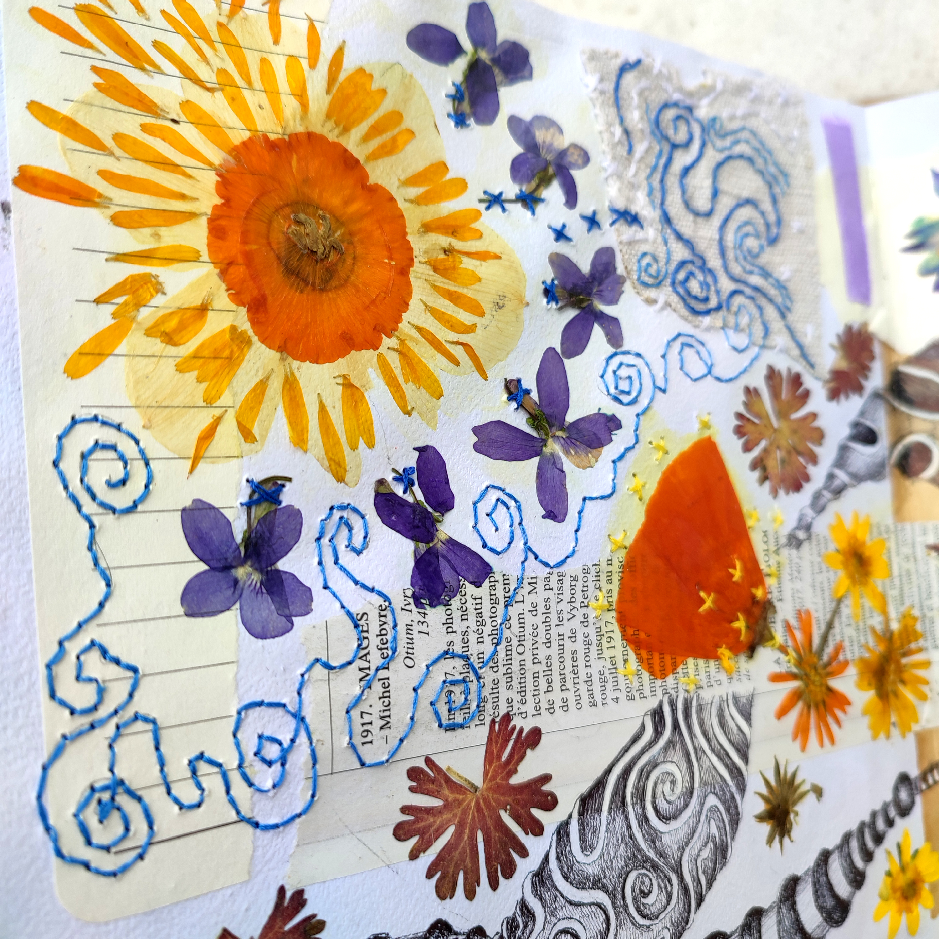 Je transforme un simple carnet trouvé dans le commerce (j’adore les carnets) en une œuvre unique, où chaque page devient un monde à part.