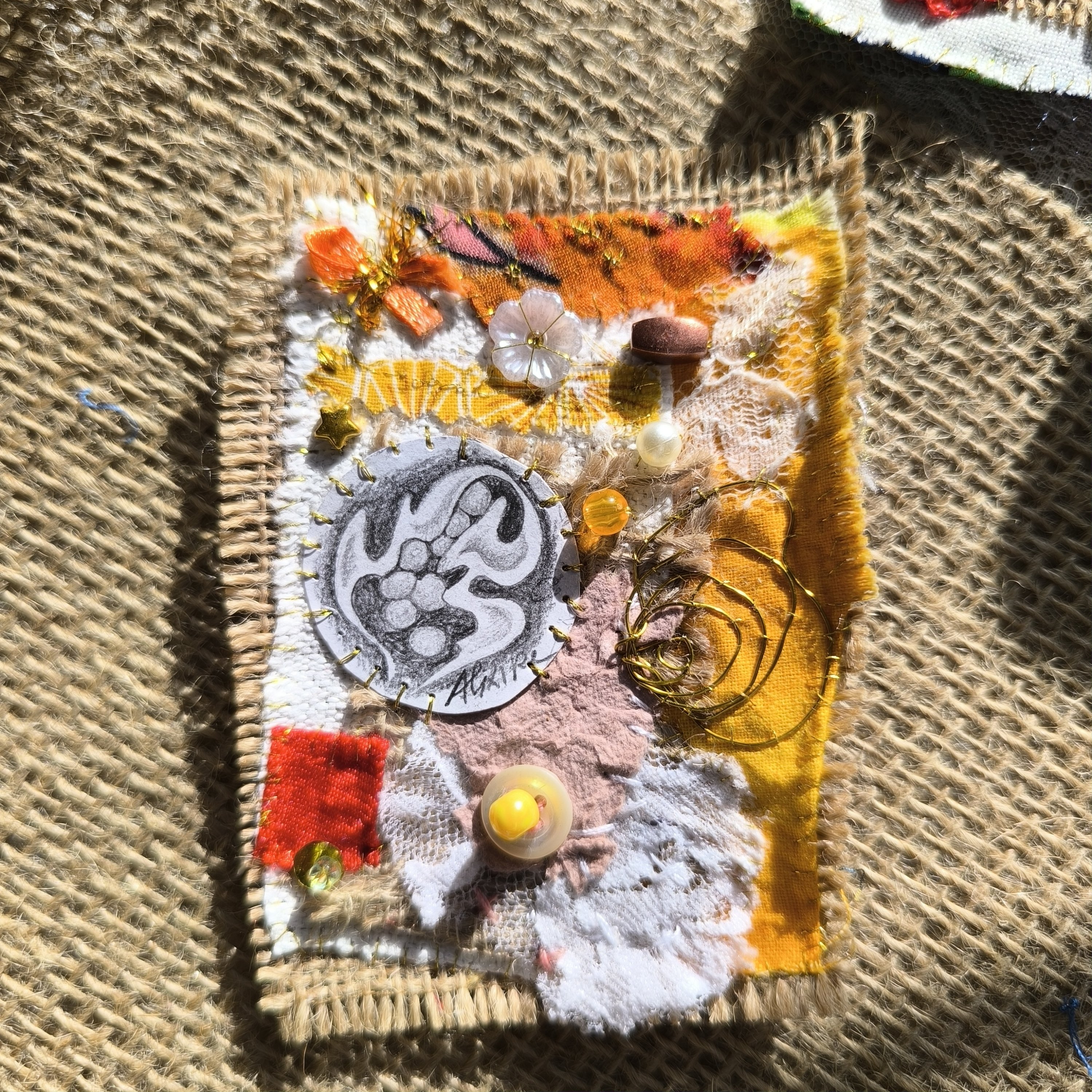 Est arrivée un jour cette envie de m’essayer à l’art textile, un nouveau support pour un bonheur inédit de créer.